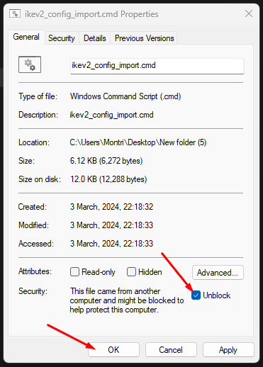3. คลิกขวาที่ ikev2_config_import.cmd เลือก Properties