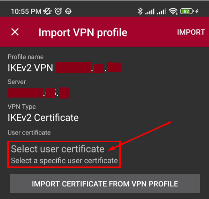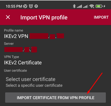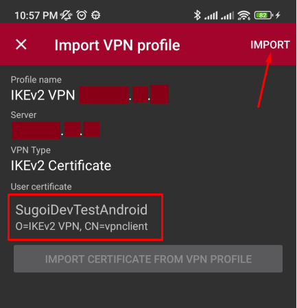 4. กดที่ “IMPORT CERTIFICATE FROM VPN PROFILE”