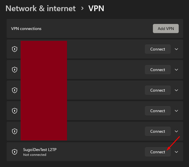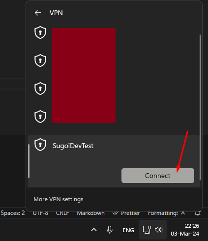 9. เมื่อเสร็จเรียบร้อยในเมนู VPN ของ Windows จะแสดงชื่อ VPN ที่เราระบุไว้ สามารถกดเชื่อมต่อได้เลยเป็นอันเสร็จเรียบร้อย