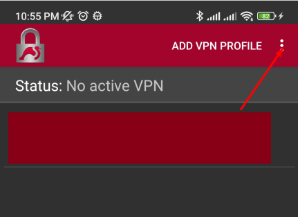 3. เปิด strongSwan กดที่จุดสามจุดบนขวาเพื่อเปิดเมนูเพิ่มเติม เลือก “Import VPN profile”
