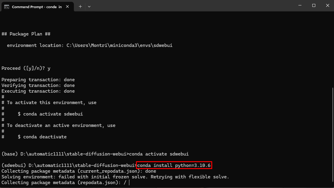 ถ้าติดตั้งแบบขึ้นสูงจะอยู่ที่ %USERPROFILE%\miniconda3\envs\sdwebui\python.exe