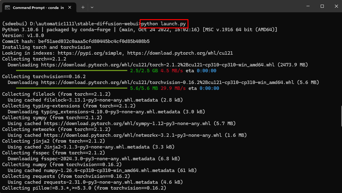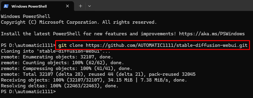 4. ใช้คำสั่งด้านล่างเพื่อ Download Stable Diffusion WebUI