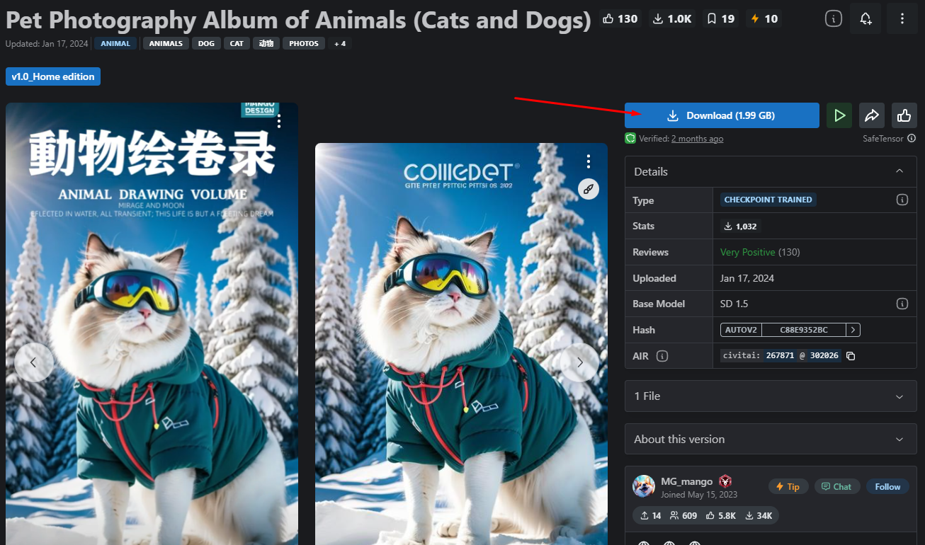 5. เมื่อเจอ Model ที่น่าสนใจให้ทำการคลิกเข้าไป และหา Link Download จะเลือกแบบ CKPT หรือ Safetensors ก็ได้