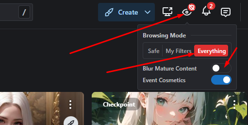 6. สำหรับ 18+ สามารถเปิดการมองเห็นได้ด้วยการคลิกที่ลูกตาด้านขวาบน เลือก Everyting ปิด Blur Mature Content