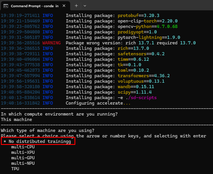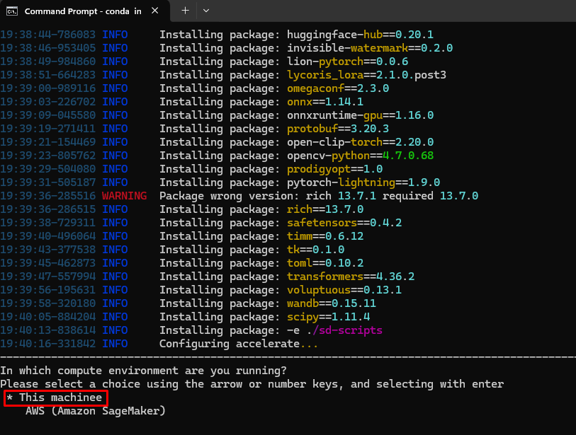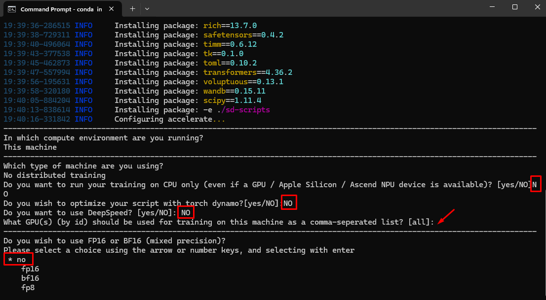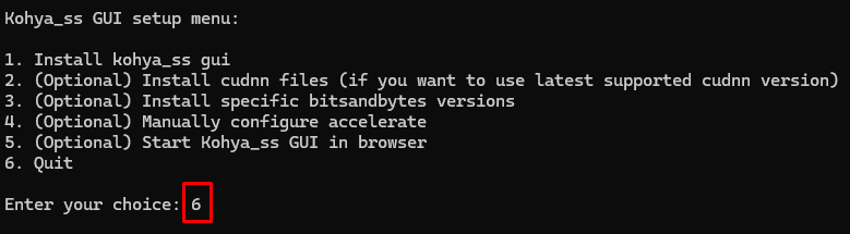 6. เลือกตัวเลือกที่ 1 เพื่อเริ่มติดตั้ง Kohya’s GUI