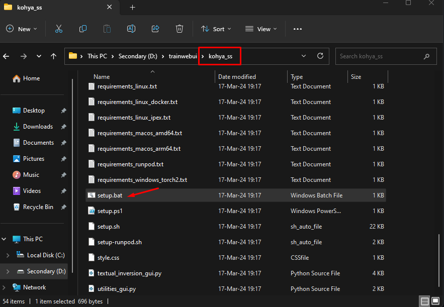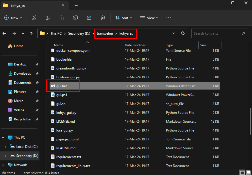 5.1.1 ให้เปิด File Explorer ไปที่ Folder kohya_ss