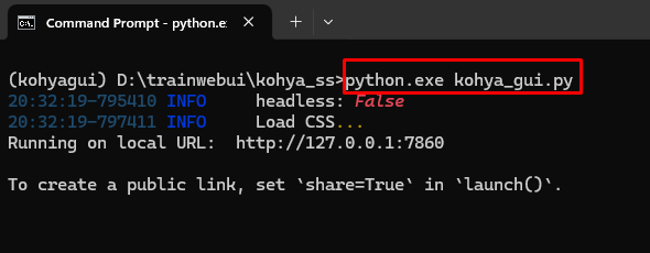 หากติดตั้ง Python แบบขั้นสูงให้ใช้คำสั่ง python.exe kohya_gui.py
