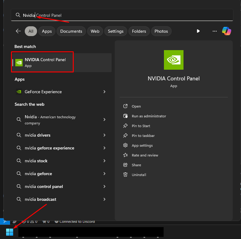 8. ไปที่ start หา “Nvidia Control Panel” แล้วเปิดขึ้นมา