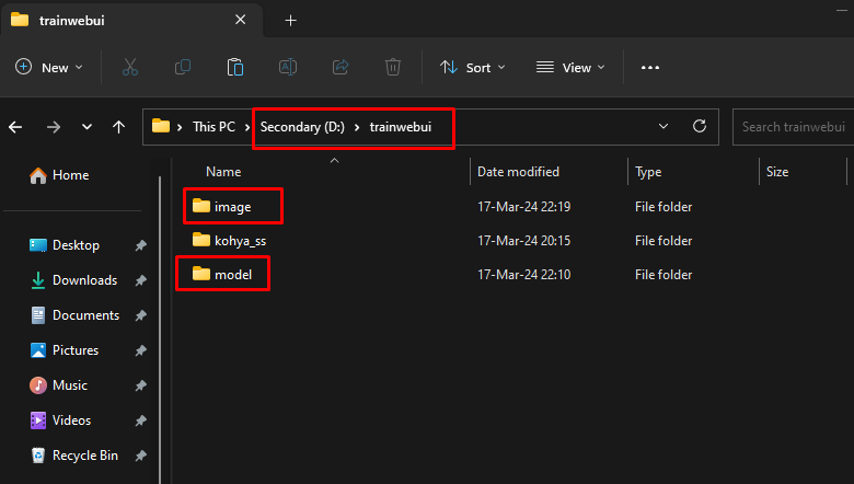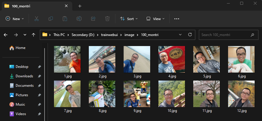 3. ใน Folder 100_keyword ให้ใส่รูปภาพที่เราต้องการเทรนลงไปโดยมีชื่อเป็นตัวเลขเรียงไปเรื่อยๆ ถ้าเทรนด้วย SD model ให้ใช้ภาพขนาด 512x512 ถ้าใช้ SDXL model ให้ใช้ภาพขนาด 1024x1024