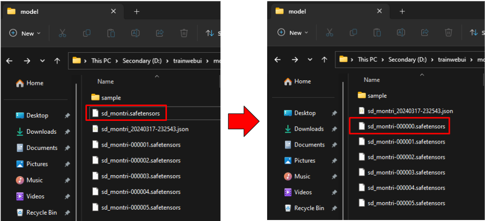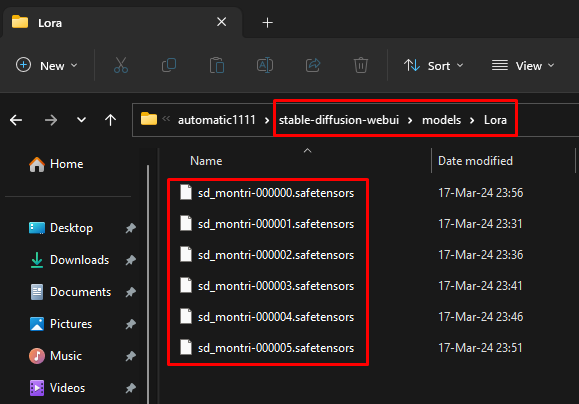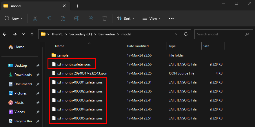 19. เมื่อทำการเทรนเสร็จแล้วใน Folder model จะมี LoRA model 6 ตัวจากการเทรน 6 Epochs
