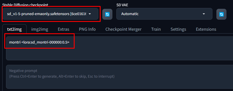 22. เปิด Stable Diffusion WebUI เลือก model ให้ตรงกับ Pretrained model ในข้อ 12