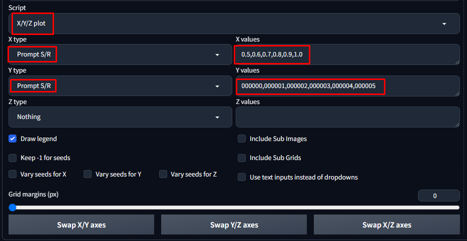 24. ในส่วนของ Script ให้ตั้งค่าตามด้านล่างเพื่อให้ WebUI สร้างภาพจาก LoRA ของแต่ละหมายเลข และน้ำหนักที่แตกต่างกัน