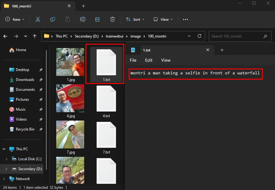 8. เมื่อเสร็จเรียบร้อยจะได้ไฟล์ .txt ที่มีคำบรรยายของแต่ละรูป