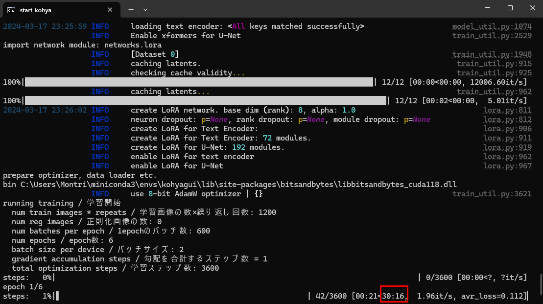 18. รอ … ใน cmd ของ kohya จะแสดงเวลาการเทรนโดยประมาณให้เห็น